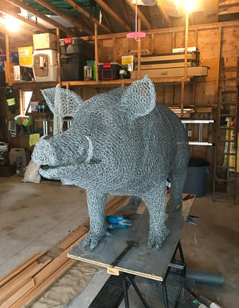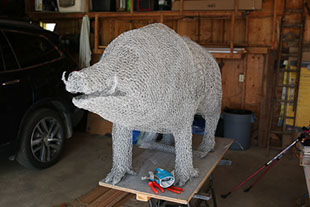 September was a very busy month as I prepared for the Apples and Art Show in Kimberly, Ontario. I set myself the task of making a life-size male Wild Boar for the show and to add to my menagerie. Each time I've made a Boar he has ended up somewhere else so this one is for our garden and will be used to demonstrate my work!