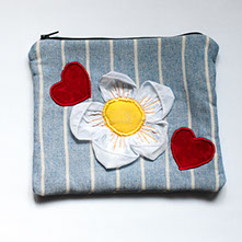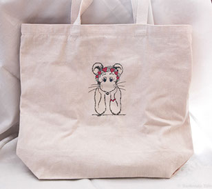 NEW!! Bag with embroidered Mouse with Hearts. The bag is the same dimensions as mentioned above, and costs $45. There is also a fully lined version $60, plus coordinating zipped & lined vanity bags. $15, $20 and $25 respectively.