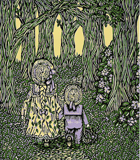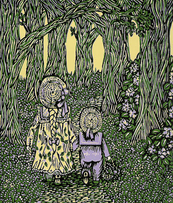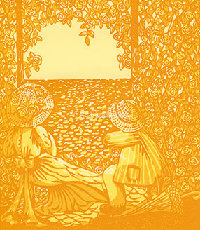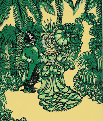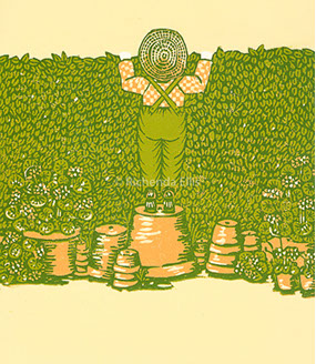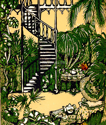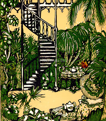 Whilst I haven't been able to print for a number of years I have included these pictures of my lino cuts as they are very much part of my style and work.