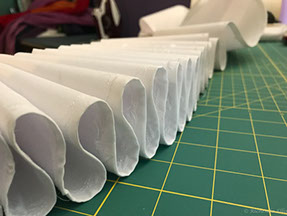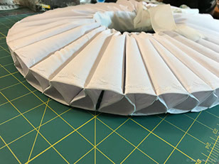 Once that was done it was on to the hat. It is made with a velveteen fabric as the hat needed the texture and weight for the finished look. A few Ostrich feathers completed the outfit.