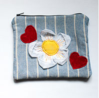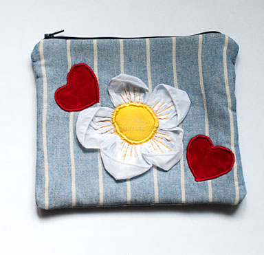 NEW!! Bag with embroidered Mouse with Hearts. The bag is the same dimensions as mentioned above, and costs $45. There is also a fully lined version $60, plus coordinating zipped & lined vanity bags. $15, $20 and $25 respectively.